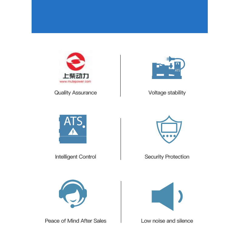 Kangdian Shangchai series adopts Shanghai New Power Automotive Technology The series of power station diesel engines (Chinese famous brand products and Chinese well-known trademarks) are equipped as power, with a standard self starting type and optional ATS switching cabinet to form a self starting and self switching unit. The unit has the characteristics of high voltage regulation accuracy, good dynamic performance, small voltage waveform distortion, high efficiency, reliable operation, long service life, and good economic performance. The unit is equipped with a complete set of maintenance free battery starting system, and users only need to inject oil and coolant, and connect the negative voltage After the pole switch, the unit can be started and output power, greatly improving the convenience of use. Our company is the only OME supporting unit in the Chongqing region.