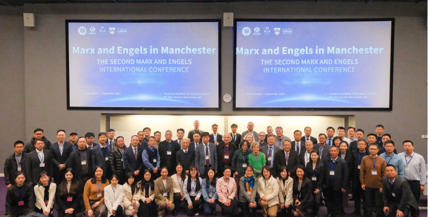 Manchester, 30 November. In order to study and explore the great ideas of Marx and Engels and the significant impact of the British Industrial Revolution on human society, an international conference - ‘Marx and Engels in Manchester’, was co-organized by Marx and Engels Humanity Exchanges International Association (MEIA), University of Salford (UK), and Canterbury Christ Church University (UK) at the campus of University of Salford from 30 November to 1 December 2024, in Manchester, UK. More than 150 researchers and scholars from over 40 universities UK, China, Germany, Denmark, Ireland and other 10 countries, as well as local representatives, attended the conference.