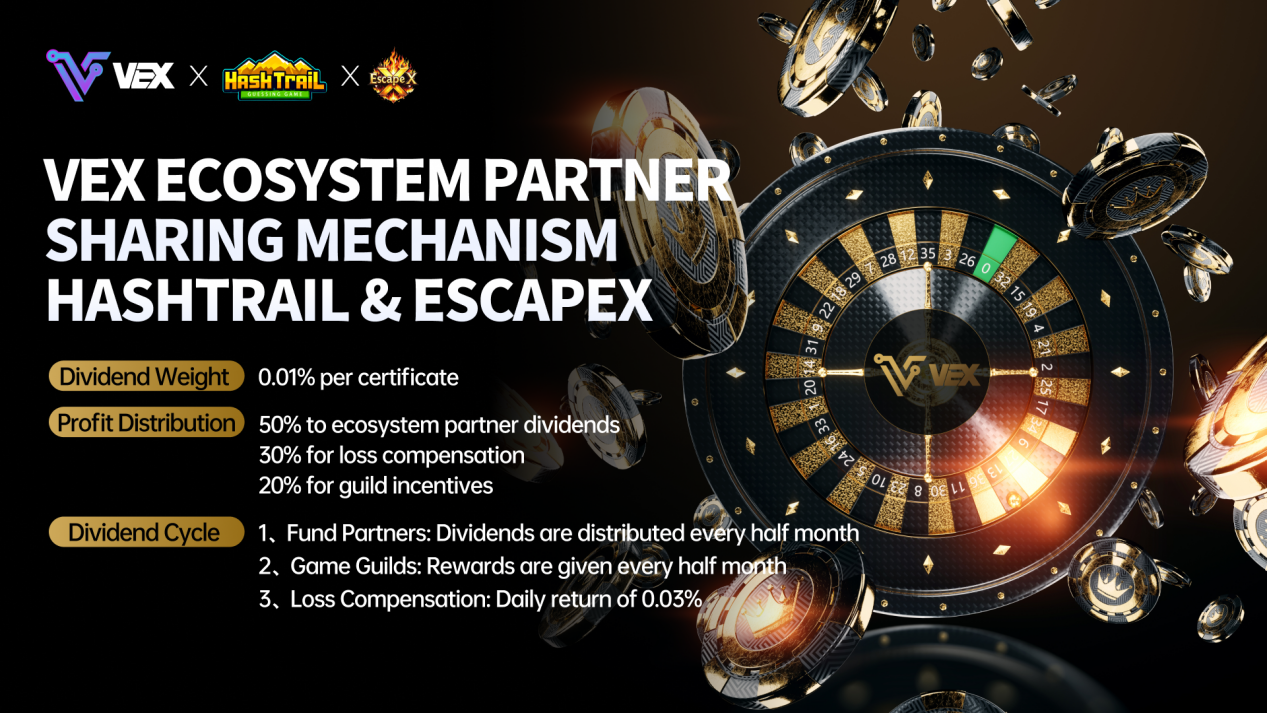 As core components of the VEX ecosystem, HashTrail and EscapeX enhance user engagement and unlock new income streams for partners: