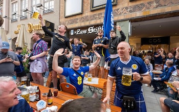Tartan Army fans in Marienplatz. 'If there's no Scotland,there's no party',they saidCredit: Paul Grover/TelegraphOthers had taken over a business class flight from Dubai on their way here after a surprise upgrade saw several Scotland fans find themselves at the bar of an Emirates plane.“It’s been trains,planes and automobiles and now beer,” said one person on board,while his friend added: “I’m not sure I can put a price on this trip,don’t tell the wife.”They were sat next to Michael Wallace,41,who had taken son Evan,14,who was discreetly having a stein of Radler,and had travelled from Edinburgh via Stockholm,who added: “It’s a beer town,Scotland will drink its fair share of it. If there’s no Scotland,there’s no party.”Throughout the day locals were treated to Tartan Army lyrics including “Diego Maradona,he put the English OUT,OUT,OUT”,numerous renditions of the Proclaimers and endless versions of Flower of Scotland on the bagpipes.“We have every bit of hope about the game,” Stephanie Phinn,34,who was with her wife Lizzie,in her late 30s,and friends said.“These are better than we get in Glasgow,” she said as her wife and friends drank their latest stein. “Look around us,how good is this.”While the German football team may be less easy going tomorrow,locals were enjoying the company of this week’s tourists including Helmut Wanner,dressed in traditional German clothing,who decided to join in with the Scottish fans chants.“Kein Schottland,keine Party,” he said to the delight of those wearing blue and white around him.Newest