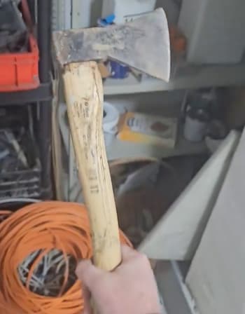 He added: ‘We made our way into the property and we’re greeted by more industrial equipment,exposed chemicals,exposed cables and exposed pipes and to top it all off an axe that looked like something out of a murder film.