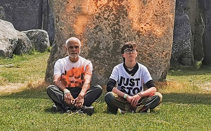 Just Stop Oil issued a photograph of Rajan Naidum and Niamh Lynch,who they said were the activists who sprayed Stonehenge