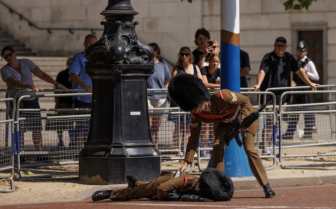 A cavalry guard passes out during a procession rehearsal on Monday
