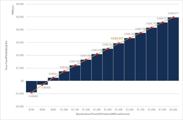 Potential pre-tax net present value ("NPV")8% of $4.7 billion (US$3.6 billion) and after-tax NPV8% of $2.9 billion (US$2.2 billion) with a pre-tax internal rate of return ("IRR") of 38% (after-tax IRR of 34%) at US$1,375 per tonne (SC5.5,FOB Bécancour basis).