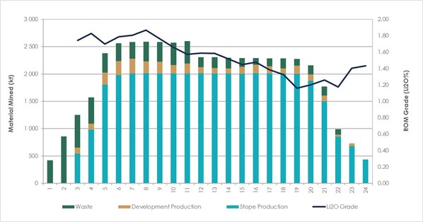 The Company's PEA mining strategy has adopted both open-pit and underground mining methods and was designed to gain earlier underground access to the high-grade Nova Zone in the northeast area of the CV5 Pegmatite than would be possible with just open pit mining. This approach has the potential to reduce the Project's operational footprint,potentially simplifying the approval process by decreasing the open pits strip ratio and therefore minimizing waste deposition at surface. The open pit strip ratio during the proposed PEA LOM scenario is estimated to be a low 3.7:1.