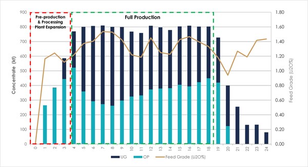 Figure 2: Shaakichiuwaanaan Spodumene Concentrate Production (See Appendix 2 for the various Company filings as of August 16,as supporting data production capacity both current and planned) (CNW Group/Patriot Battery Metals Inc.)