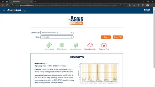 HONG KONG,Aug. 20,2024 -- HKBN Enterprise Solutions (HKBNES),a leading Information and Communications Technology (ICT) provider and divisionof HKBN Group,is excitedto unveil AegisIntelligence,a cutting-edge upgrade toits proprietary AegisInsight network performance monitoring platform. With the integration of Generative Artificial Intelligence (Gen AI),Aegis Intelligence offers in-depth analysis that encompass crucial diagnostics and actionable advice. Further expanding on the platform's industry-leading real-time network visibility and monitoring capabilities,this Gen AI assistant summarises historical data trends and provides proactive network management insights which can serve as cornerstones for companies to strategically improve their network infrastructure planning,as well as transform their posture to one of pre-emptive prevention of current and future network challenges.