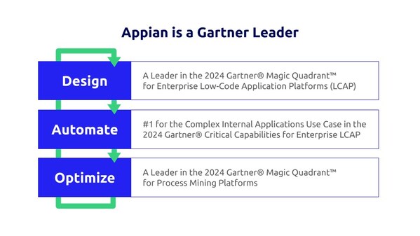 MCLEAN,Va.,Oct. 23,2024 --Appian (Nasdaq: APPN) today announced it has ranked #1 for the Complex Internal Applications Use Case in the Gartner Critical Capabilities for LCAP report,and was ranked second for the External-Facing Applications and the Tactical Internal Applications Use Cases.1 Appian was again recognised as a Leader in the Gartner Magic Quadrant for Enterprise Low-Code Application Platforms (LCAP) report.