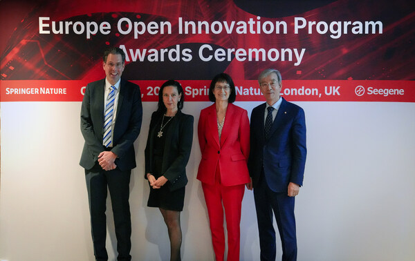 [Photo 2] ▲ From Right: Dr. Jong-Yoon Chun,CEO and Founder of Seegene; Professor Dame Jenny Harries,Chief Executive of the UK Health Security Agency; Elena Bonfiglioli,Pharma and Life Science at Microsoft; and Marc Spenlé,COO of Springer Nature posed for a photo during Open Innovation Award ceremony in Springer Nature Campus,2024.