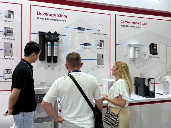 ANGEL also presented the C8 Microfiltration Water Purifier at the show,which is primarily used for ice maker machines and other water-using equipment at beverage stores. ANGEL's very own UVC-LED sterilizer effectively and efficiently removes bacteria and viruses from the water,enhancing not only the taste,but the overall quality of the drinks.