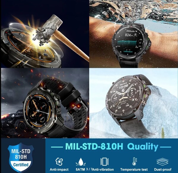 The KUMI U5 Pro stands out as KUMI flagship smartwatch,seamlessly blending cutting-edge technology with a rugged yet refined design. This smartwatch is rigorously tested to withstand harsh environments,remaining intact after high-altitude drops and high-pressure impacts. It performs exceptionally well in dusty and muddy conditions,is resistant to underwater use (such as swimming,diving,and rain),and maintains stability even in extreme temperatures (from -30°C to 70°C). With precise GPS and ChatGPT capabilities,the U5 Pro is a reliable,durable,and innovative multifunctional device.