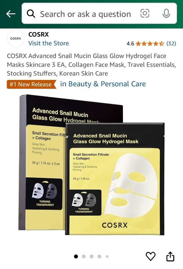 Advanced Snail Mucin Glass Glow Hydrogel Mask Takes #1 Spot in Beauty and Personal Care