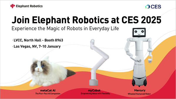 SHENZHEN,China,Dec. 21,2024 -- As technology continues to evolve,consumer electronics have become essential to everyday life. Elephant Robotics,a high-tech company specializing in robotics design and production,is thrilled to announce its participation in the International Consumer Electronics Show (CES) 2025. This premier technology trade show will be held in Las Vegas,USA,from January 7-10,where you can find Elephant Robotics at Booth 8963 in the LVCC North Hall.