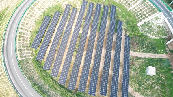 On the highways of Hebei,PV panels installed on slopes and loop ramps shimmer like blue waves,absorbing sunlight and injecting green energy into the highway network.