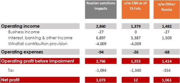 Financial impacts of the Russian assets