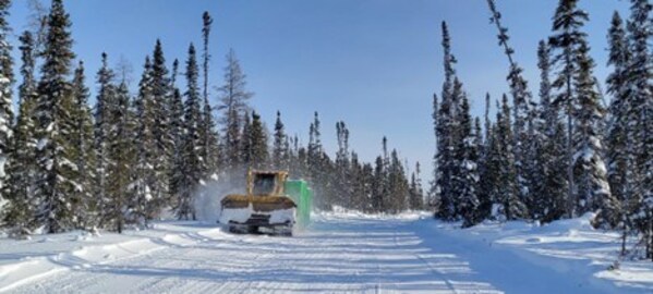 Figure 3: Mobilization of equipment along the winter road connecting the CV5 and CV13 pegmatites.