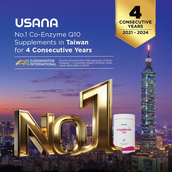 USANA獲評連續四年爲台灣輔酶Q10第一品牌