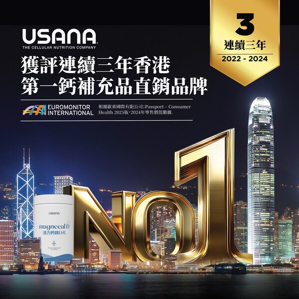 USANA獲評連續三年香港第一鈣補充品直銷品牌