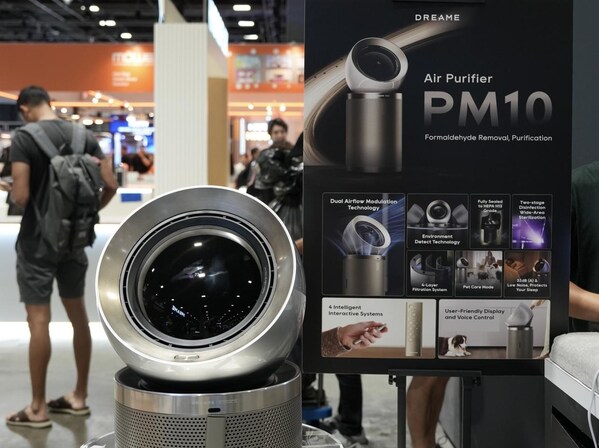 The PM10,representing Dreame's entry into the air purification sector,features a round head design inspired by astronauts,intelligent robots,and the concept of levitation,giving it a futuristic feel. It incorporates Dreame's innovative AI environmental sensing technology,dual air duct airflow control,and a six-layer precision filtration system.