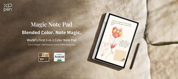 LOS ANGELES,March 19,2025 -- XPPen,the leading digital innovation art brand,announces the Magic Note Pad,the world's first 3-in-1 color note pad,redefining the digital handwriting experience and ecosystem. This next-generation device features a groundbreaking 3-in-1 X-Paper display,the X3 Pro Pencil 2 equipped with industry-leading 16,384 pressure levels,and the customized XPPen Notes smart note-taking application. Powered by Android 14's open ecosystem,the Magic Note Pad delivers a versatile,efficient,and eye-friendly digital note-taking solution tailored for business professionals,students,and creative users.