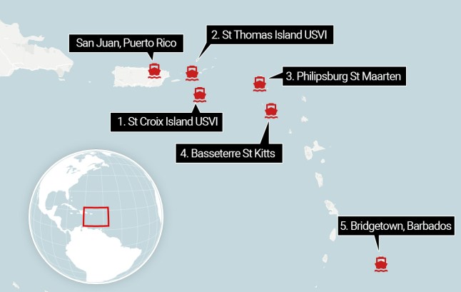 Ending up in a foreign country without any of you belongings is not on anyone’s holiday bucket list.Cruise ships run on very tight schedules from port to port,but captains will try to keep the gangway open as long as possible if they hear some passengers are late getting back.But once the ship realises you have not returned,they will often go into your stateroom and take essential items like passports to leave the items with port agents on land.That’s why Royal Caribbean recommends leaving these items in easy-to-find places,like a safe in case of an emergency.Other cruise lines will collect passengers’ passport when they get on for this very reason.From the port,you will then have to liaise with port staff to try get in contact with the boat and find out next steps.If you want to get your holiday back on track,you will need to book travel to and accommodation at the next port your cruise is stopping at.The cruise company will often not help cover these costs,unless you are on a company-organised excursion which ran late.One of your first calls should therefore be to your travel insurance provider,who will have 24-hour assistance,who will be able to explain what coverage and travel help they can offer.If you decide to just travel home after the ordeal of missing the ship,then the cruise can ship everything to you. But this won’t be cheap.The journey had taken tourists from San Juan in Puerto Rico to the US Virgin Islands and Netherlands Antilles.The Rhapsody of the Seas was next due to arrive at Bridgetown in Barbados before circling back to Puerto Rico two days later.