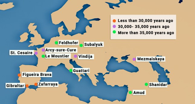 Principal sites showing the most recent evidence of Neanderthals (Picture: Getty Images)The Neanderthals,or Homo neanderthalensis,lived from about 400,000 to 40,000 years ago.Our closest human relatives,they evolved across Europe and Asia while modern humans were still evolving in Africa.Neanderthal populations were adaptable,living in colder environments across modern-day England and Siberia,ranging down to the warmer regions of Spain and Italy.Smaller than the average human,they ranged in height from around 4’11” to 5’8″,but were broader and more stocky. Their strong facial features included a large nose and strong brow ridge.We know from DNA analysis that the Neanderthals mated with early humans– Homo sapiens – resulting in the continuation of their DNA,but exactly why the species disappeared is still unknown.One theory is they were out-competed for food and resources by incoming Homo sapiens,or may have simply been replaced by them.Alternatively,rapid climate change may have been to blame.Whatever the reason,our closest relatives suddenly went extinct around 40,but a little bit of them lives on.Source: Natural History Museum5. Bad skin
