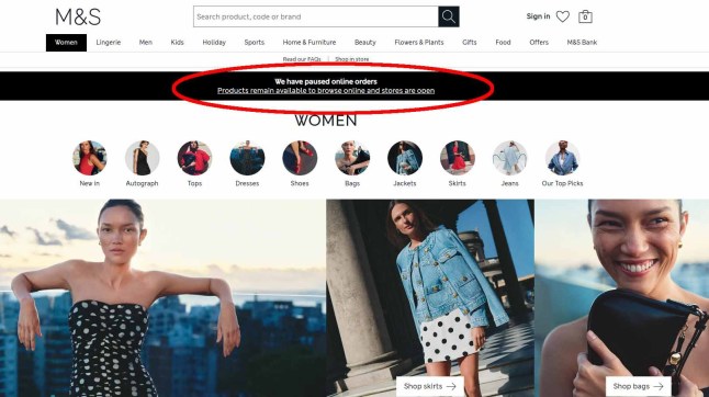 Marks and Spencer is still not taking online orders (Picture: Marks and Spencer)