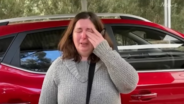 Patterson cried while talking to reporters in 2023 (Picture: Channel 7)