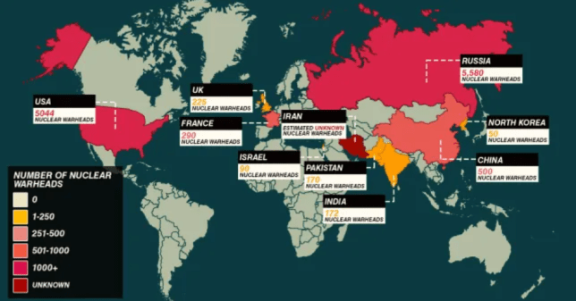 A map showing how many nuclear warheads each country has (Picture: Metro)