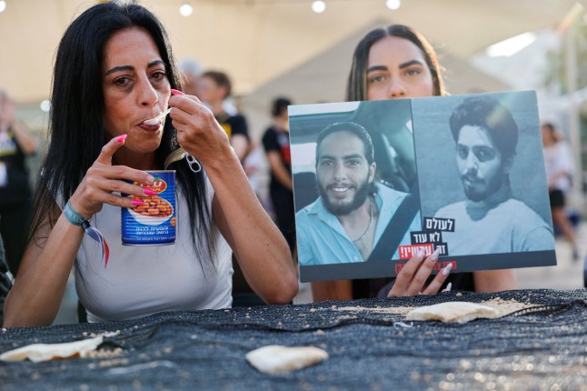 Protesters hold photos of hostages held in the Gaza Strip during a protest calling for a hostages deal in Tel Aviv,Israel (Picture: Getty Images)
