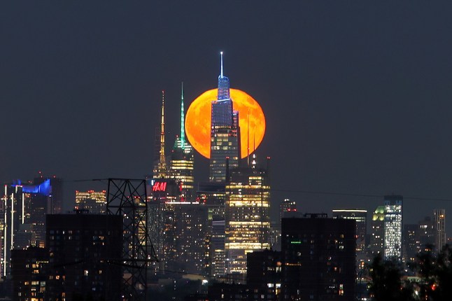 The moon made a stunning addition to the Manhattan skyline (Picture: Nazli Zeynep Karabulut/Anadolu via Getty Images)