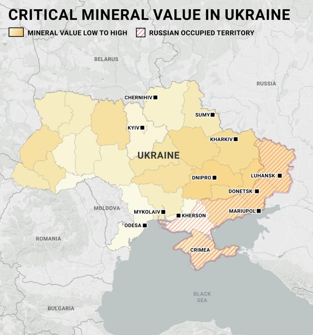Another key element of Trump’s plan will see the Kremlin gaining access to rare earth minerals in occupied Ukrainian territories.