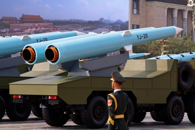 Hypersonic anti-ship missiles – which China has previously tested against mock-ups of US aircraft carriers – were also paraded.