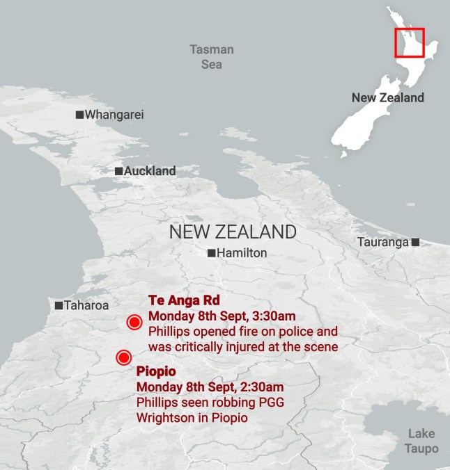Phillips was tracked down after he and one of his children robbed a store in Piopio (Picture: Metro.co.uk)