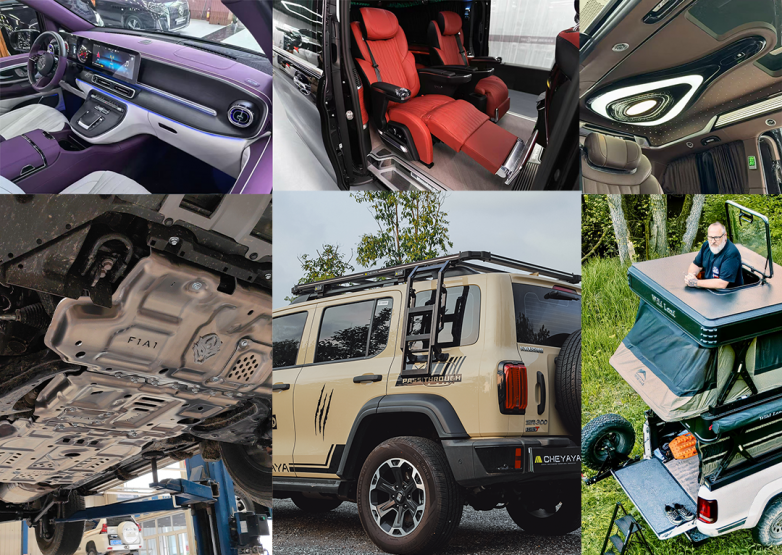 Featured Vehicle Models:Mercedes-Benz V-Class, Vito, Toyota Alphard / Vellfire, Toyota Sienna (High-Roof), Toyota Granvia (High-Roof), Toyota HiAce, Buick GL8, Mitsubishi Delica 4WD, Dongfeng Mengshi 917/817, MaxusPickup, Tank series, Ford Bronco, Ford Ranger, JMC, 212, Jetour Traveller T2, Jetour Shanhai, Chery iCar 03, Chery V23, Chery X3L, CherryG700, Toyota Land Cruiser series, Suzuki Jimny, and other mainstream models.