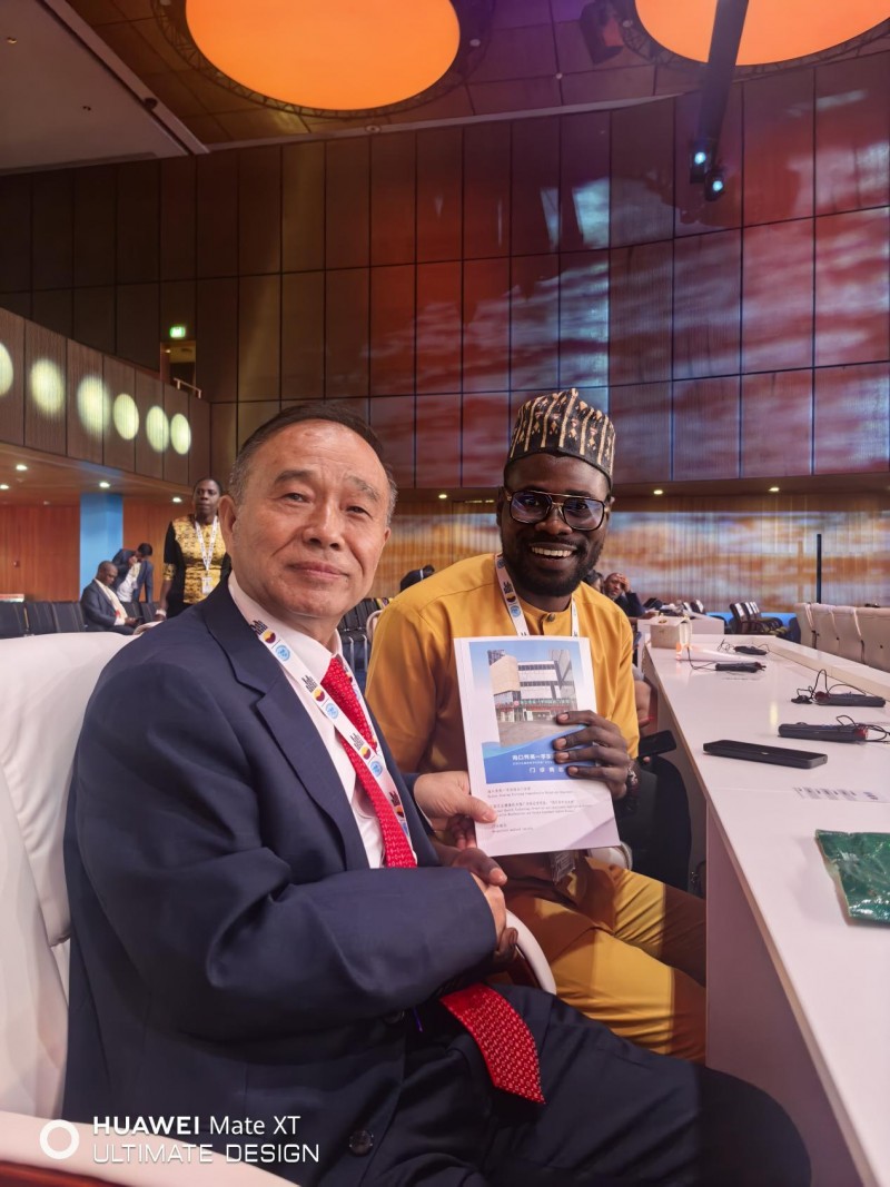 Professor Wang Junqiang and Benjamin Blinken Adusai, Chairman and Director General of the "Immigration Organization for Peace and Federal Development", took a group photo as a memento