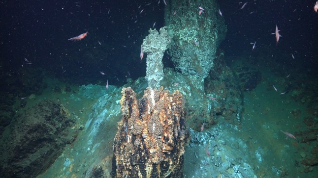 Fields of coral stretched across the trench at about 700 metres deep (Picture: The Nippon Foundation-Nekton Ocean Census/Schmidt Ocean Institute)